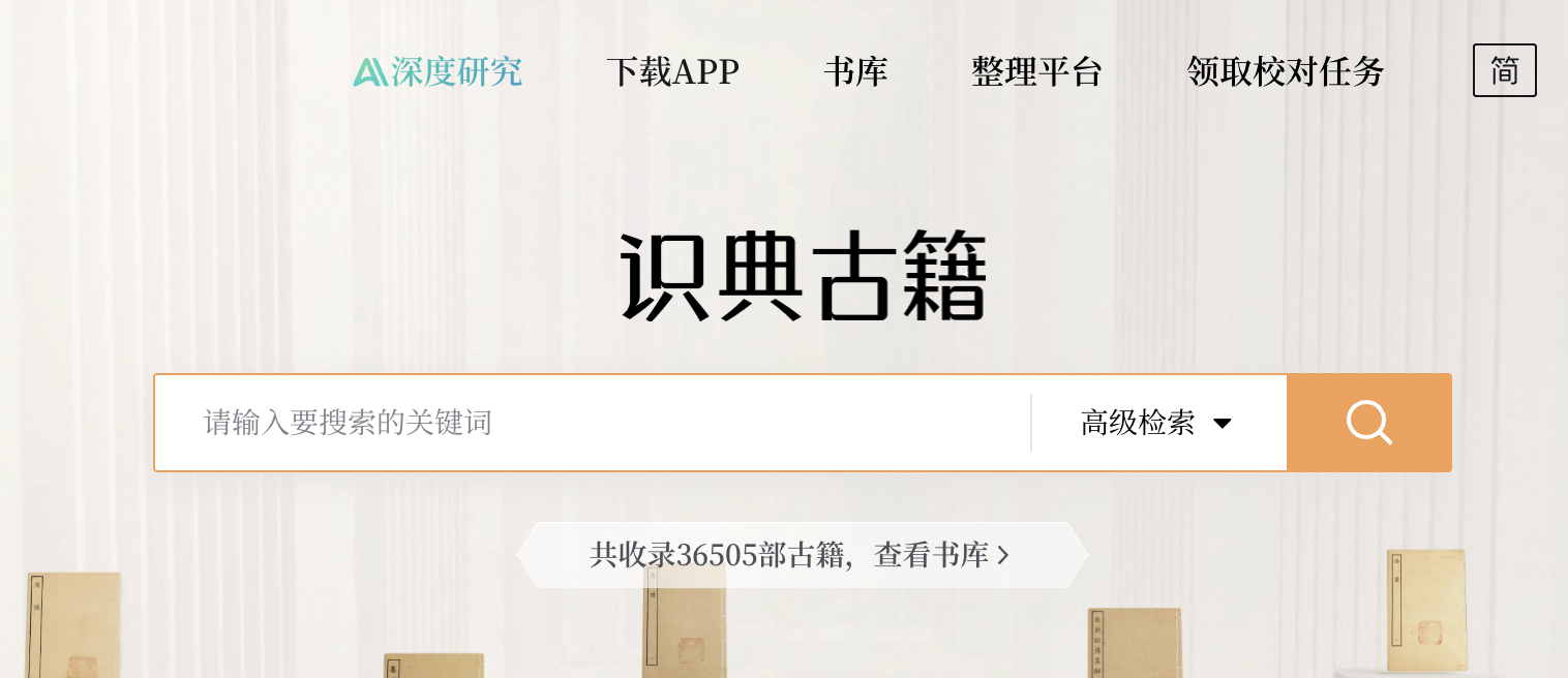 识典古籍首页顶部“深度研究助手”入口。
